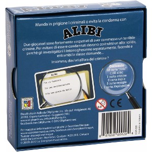 En Alibi, varios jugadores serán acusados de un terrible crimen, del cual se tendrán que defender. Tendrán dos minutos para establecer una coartada lo suficientemente fuerte como para franquear las preguntas de los investigadores y salir airosos de las acusaciones del juez. Por otro lado, los investigadores, siempre supervisados por el juez, tendrán que elaborar una batería de preguntas lo suficientemente comprometidas como para tirar por tierra la historia de los acusados. ¿Serás capaz de convencer al juez?
