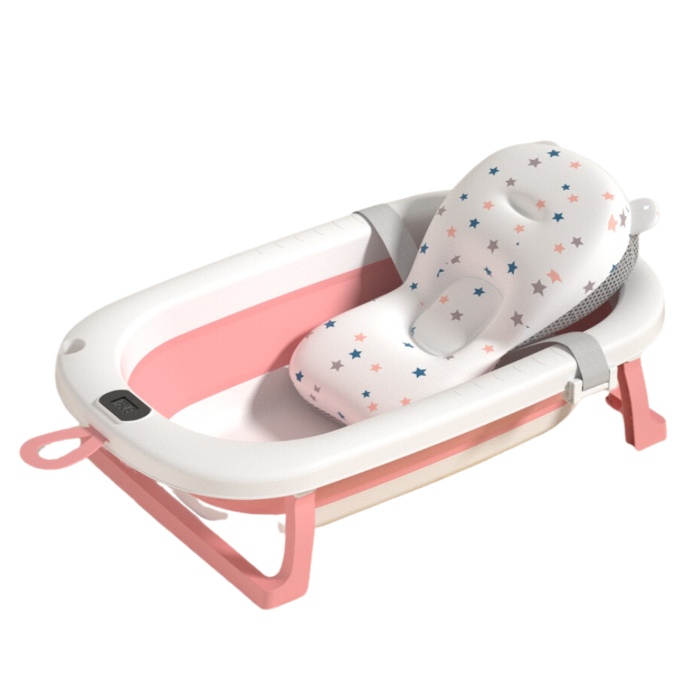 BAÑITO PLEGABLE CON TERMOMETRO ROSADO Y BABY SPLASH