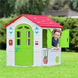 Diseño atractivo y funcional: techo con estrellas traslúcidas que permiten la entrada de luz, timbre con luz y tres sonidos diferentes, llave mecánica, faroles iluminados y buzón para recibir cartas. Todo pensado para dar la apariencia de una casita real que cautiva a los niños.