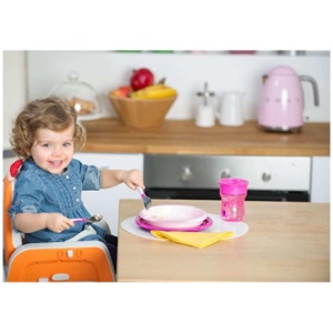 - Diseño colorido y tamaño pequeño para ayudar a los niños a aprender a comer como los adultos.