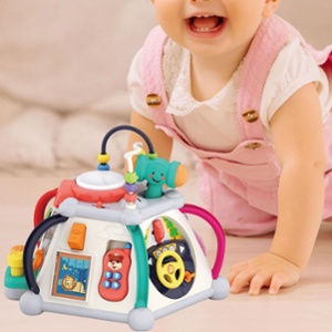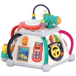 - Incluye un pequeño teléfono, micrófono, tamborcito con luces, volante para manejar y un martillo.