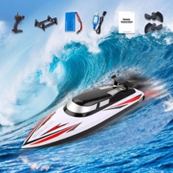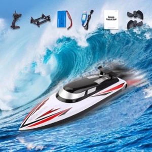Doble hélice: cuando el voltaje de la batería del barco RC es demasiado bajo, el control remoto hará una vista previa de alarma para pedir que la lancha rápida regrese a tiempo. El barco a control remoto adopta un diseño de doble hélice de accionamiento, la velocidad de conducción se multiplica y el giro es más suave, y la sensación de control está llena.