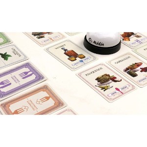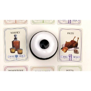 CONTENIDO:50 cartas de comidas / 50 cartas de pedidos / 20 fichas de queja / timbre