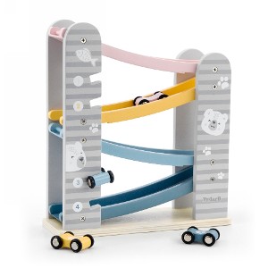 El deslizador auto sólido incluye cuatro mini coches. Sólo hay que poner los coches de uno en uno en la parte superior de la corredera, y luego ver que se deslicen hacia abajo.