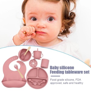 Juego de vajilla de silicona para bebé, antideslizante, libre de BPA, apto para microondas y lavavajillas.