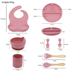 Incluye: 1 Plato, 1 Vaso, 1 Vaso con sorbito, 2 Cubiertos de aprendizaje, 2 Cubiertos, 1 Bowls, 1 tapa para snacks.