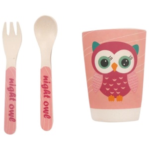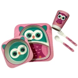 SET ALIMENTACIÓN INFANTIL BAMBOO 5PCS BUHO