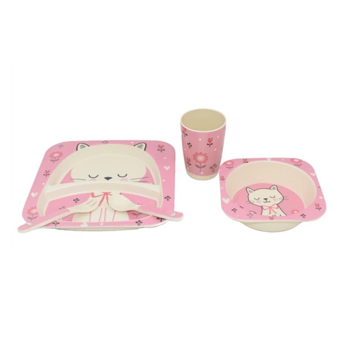 SET ALIMENTACIÓN INFANTIL BAMBOO 5PCS GATO